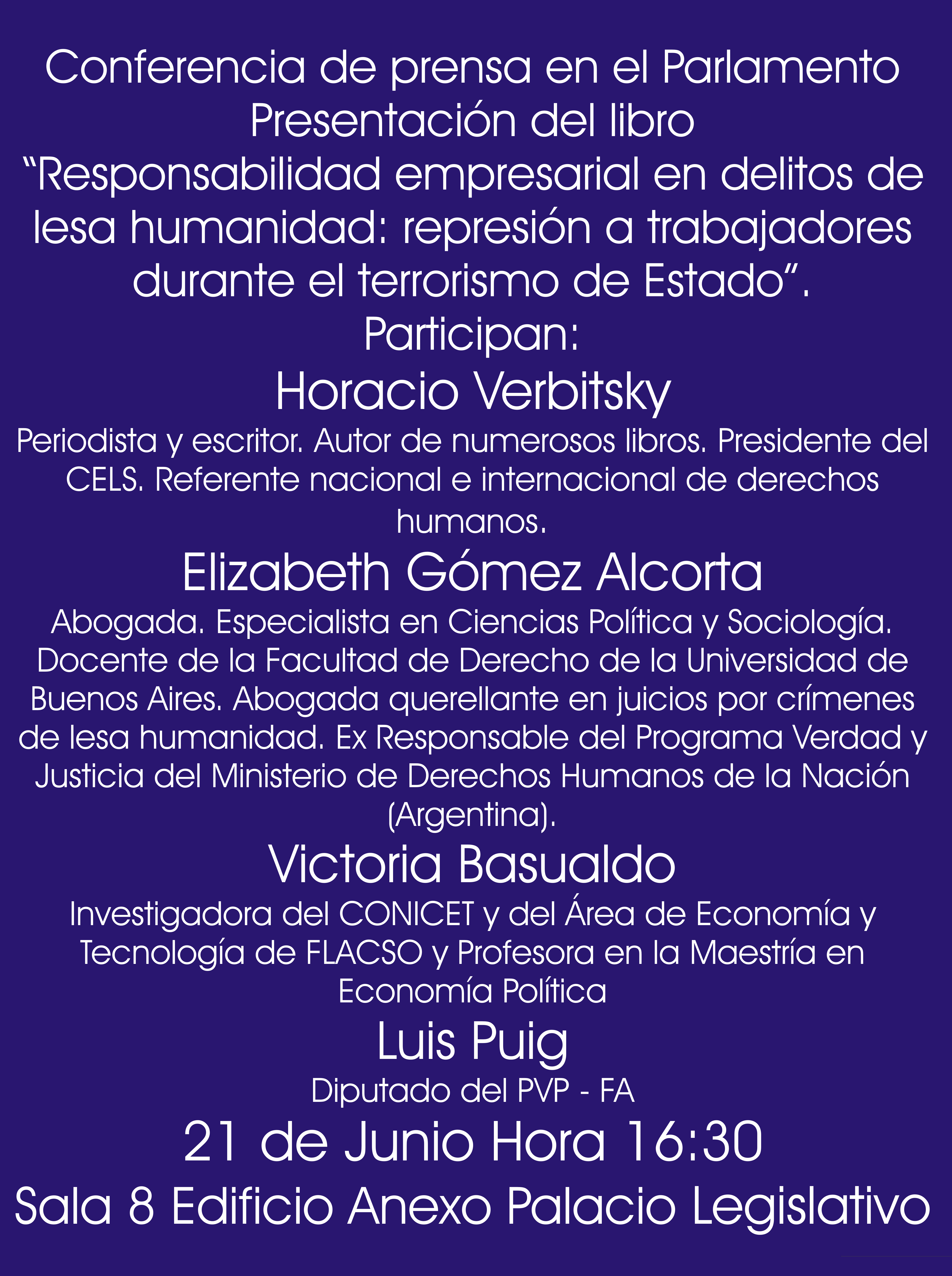 L@s invitamos a la conferencia de prensa en el Parlamento, de la presentación del libro: