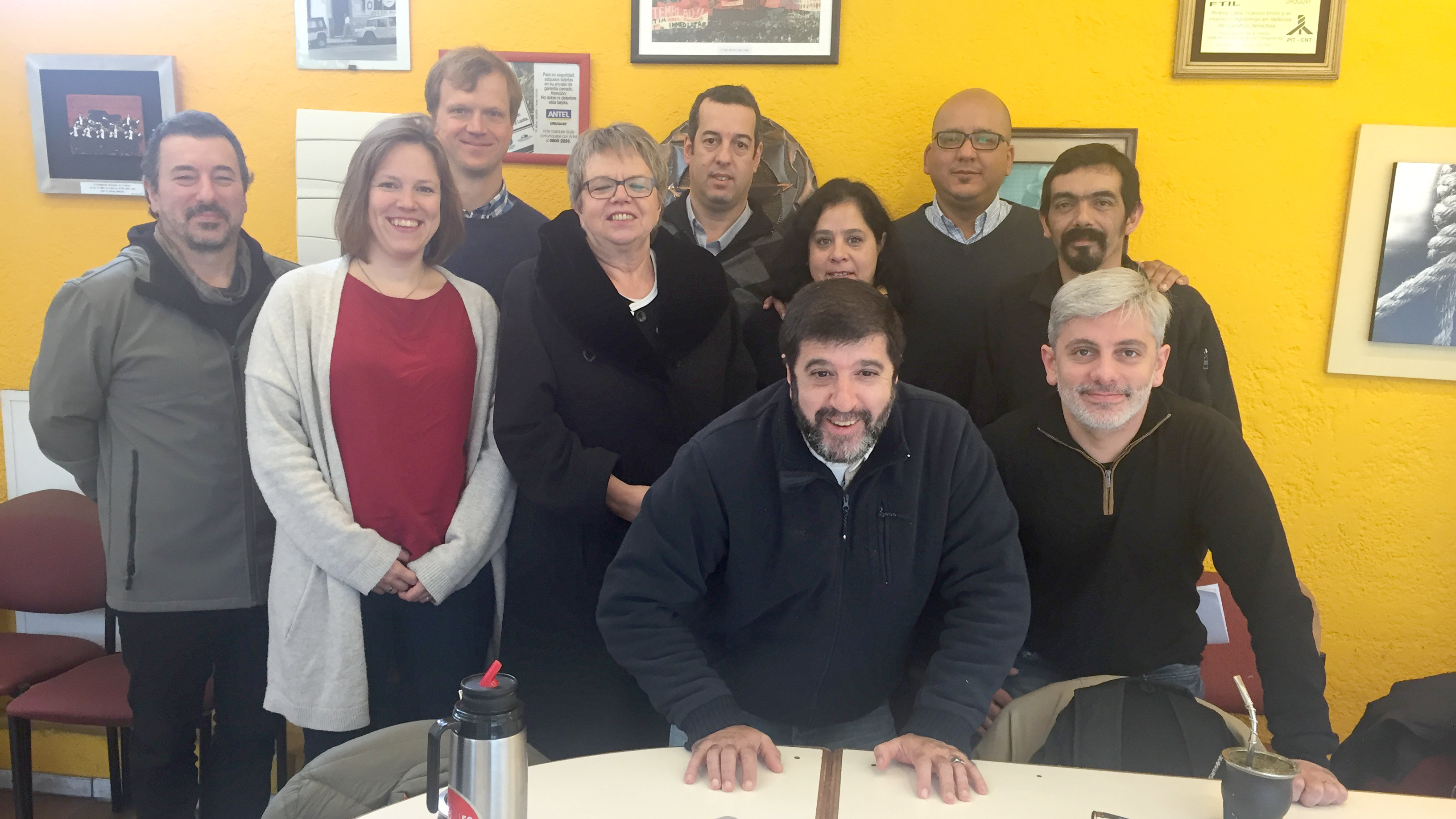 Fueron recibidos por el Presidente del PIT-CNT, Fernando Pereira, el Director de Formación del Instituto Cuesta Duarte, Iván Häfliger su Coordinador Mario de Saa y destacados representantes sindicales del sector de la Enseñanza de nuestro país, José Olivera y Mónica Gamarra.